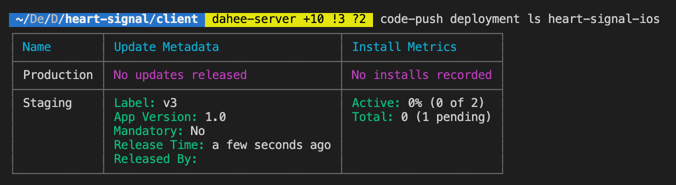 7. 테스트 플라이트에 올렸으니, 코드푸시가 적용되는지 테스트해보자!