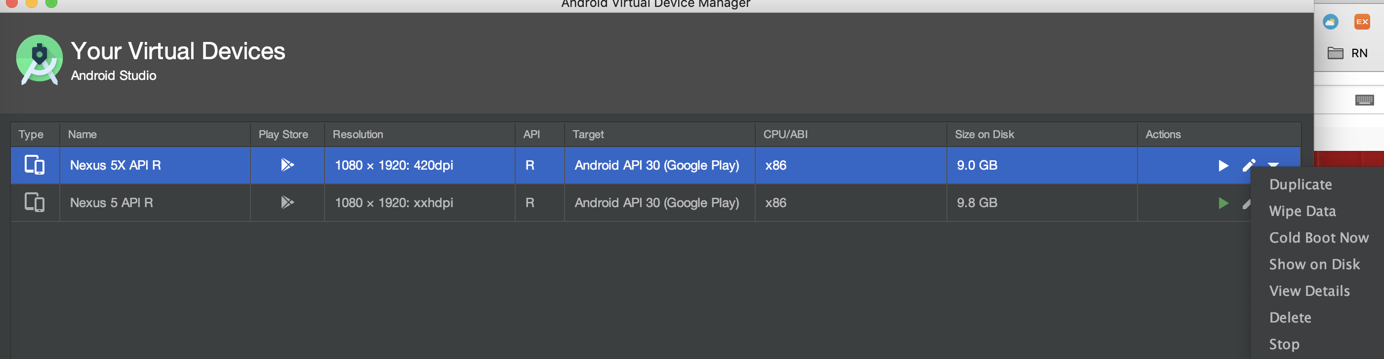 - 해결법: 안드로이드 스튜디오 실행 - Configure - AVD manager - 실행하려는 에뮬레이터의 Actions 탭 - Wipe Data 클릭