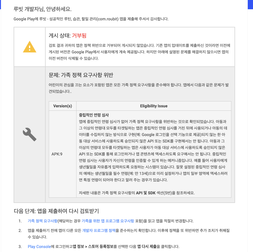 1. Admob을 추가한 뒤 플레이 스토어에 업데이트 제출을 했는데 거부 당했다.