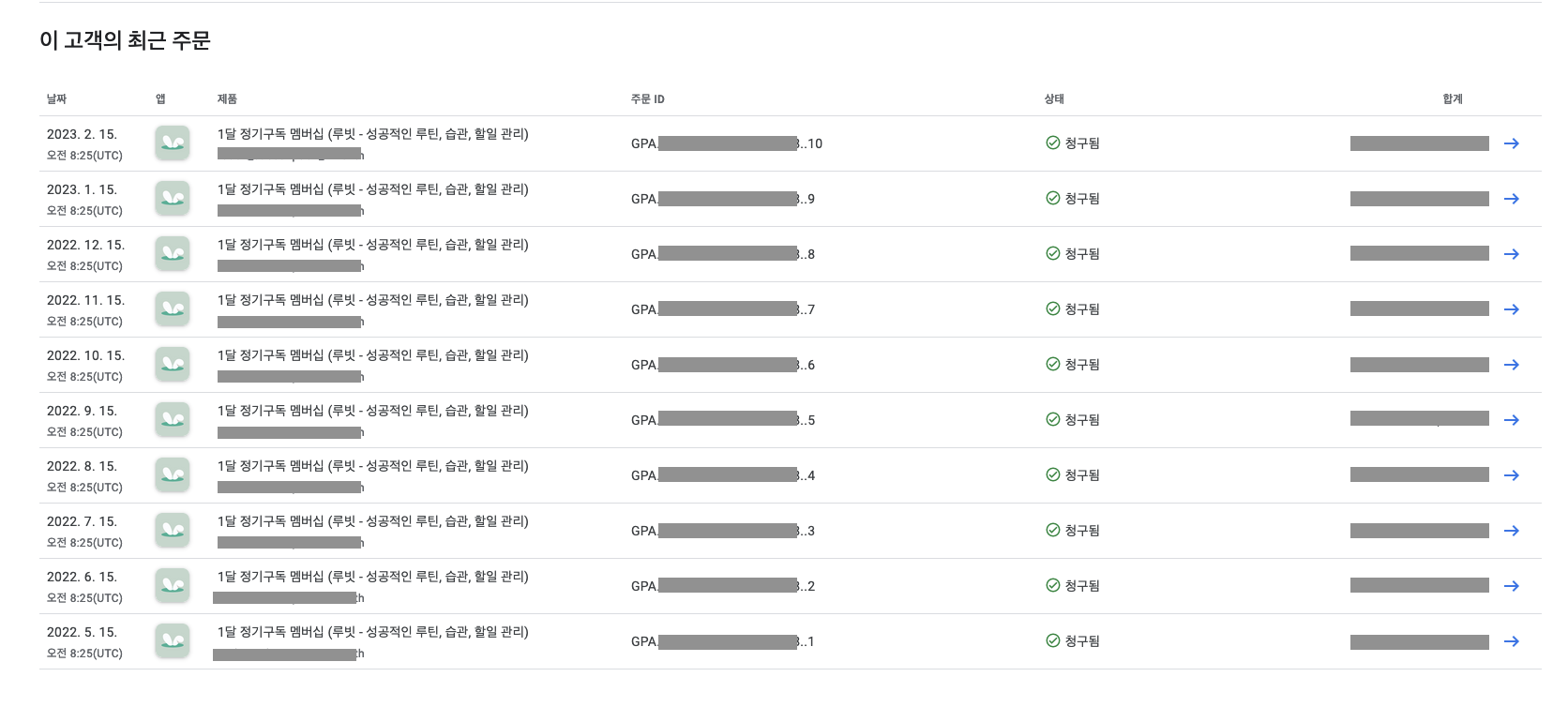 구글 플레이스토어 구독상품을 유저가 구독하면