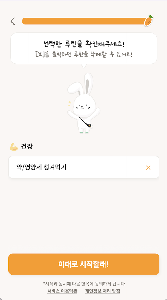 - "이대로 시작할래" 버튼을 누를 때 회원가입 API 호출이 일어난다.