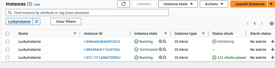 - Lucky Instance의 이미지가 하나 필요하다. Action에서 Create Image
