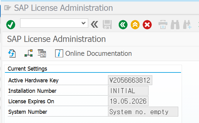 > SAP GUI 로그인 후 실행창에 입력 : `slicense`