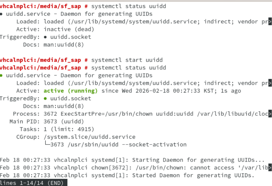 > 다시 `sudo systemctl status uuidd` 로 상태 active 확인