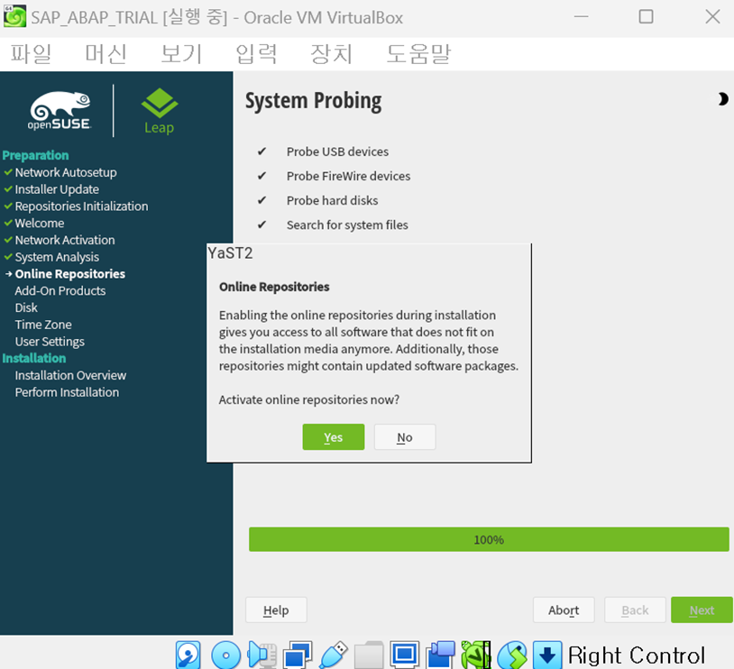 (Ask PackageKit to quit 질문이 나오면 터미널 창만 닫고 다시 터미널창 켜서 `sudo -i` > `zypper refresh` 하는걸 반복하면 2~3번 내로 정상적으로 돌아감)