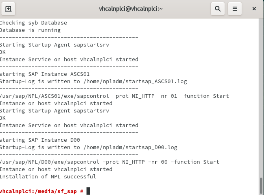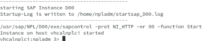 > 출력 메세지 "Instance on host vhcalnplci started" 확인