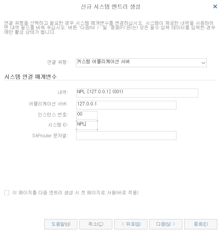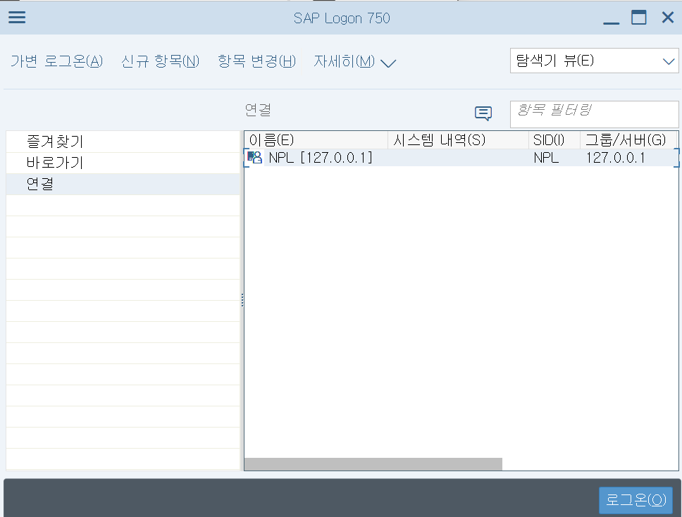 목적 : Windows에서 SAP 시스템(NPL)에 접속