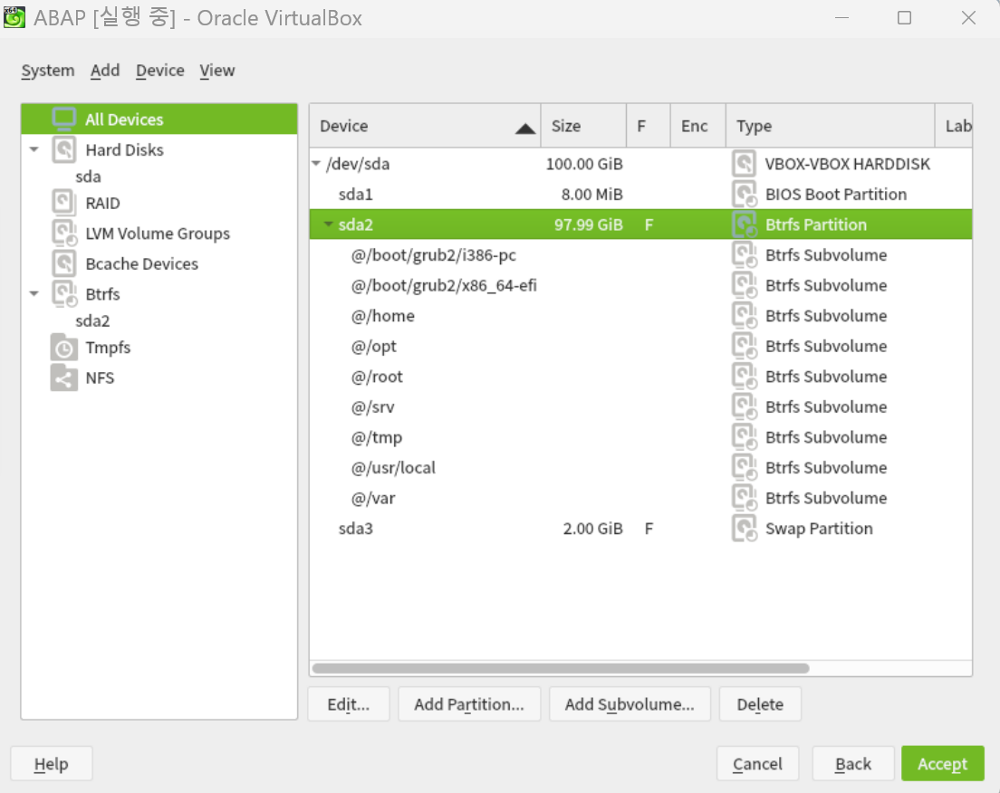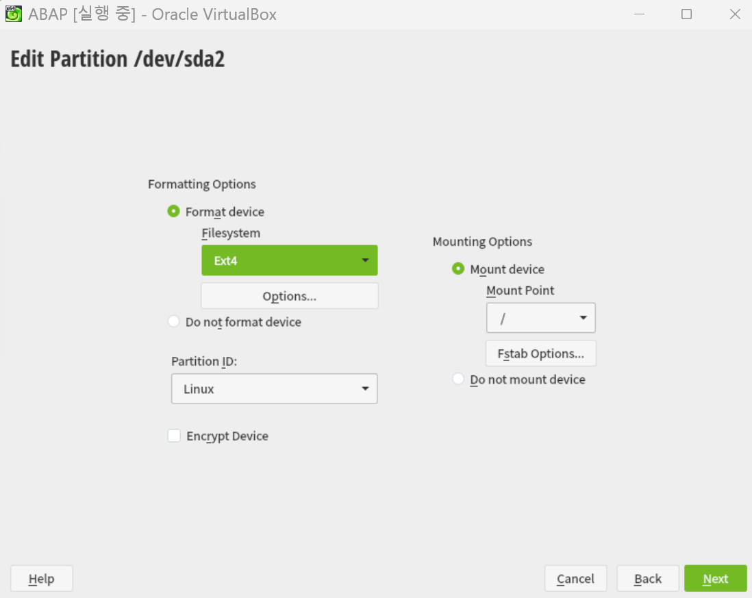 sda2 선택하고 Edit 클릭