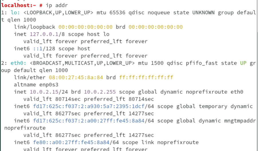 > `ip addr`