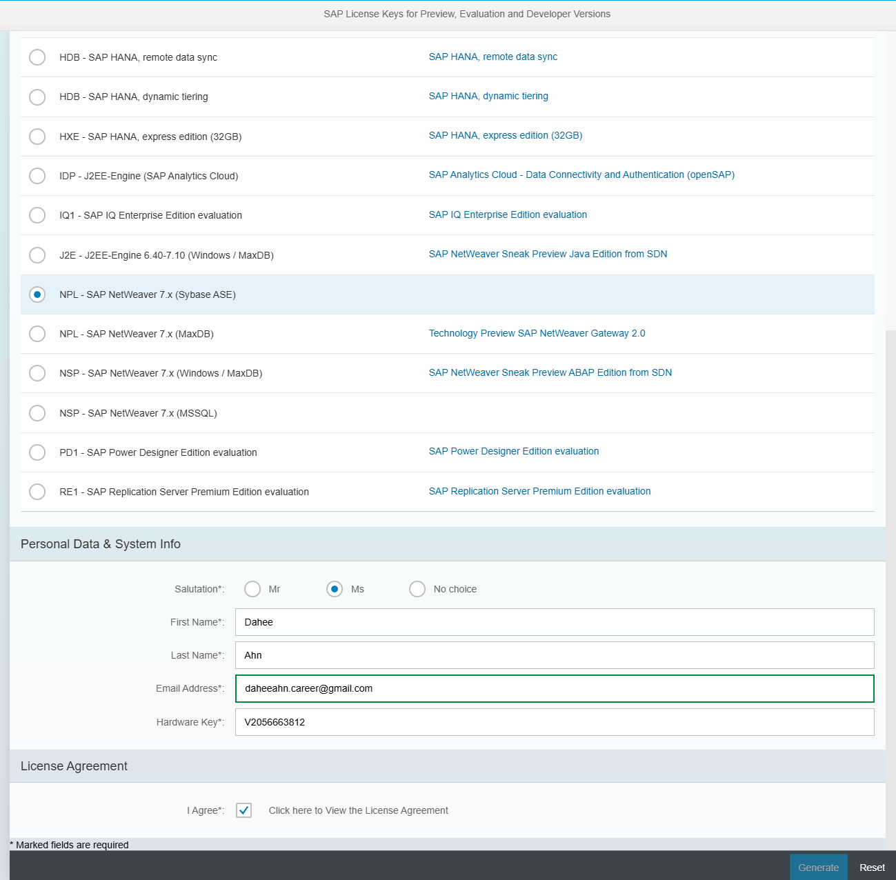 > Hardware Key 등 Info 입력