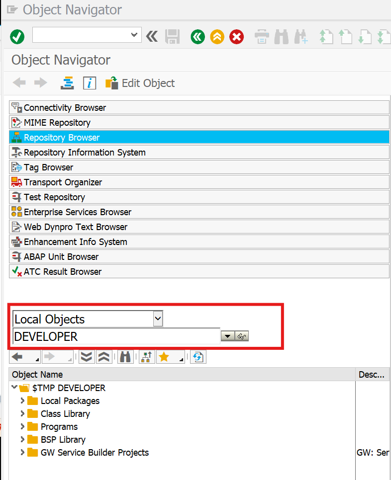 > Repository Browser - Local Objects - DEVELOPER - 엔터 - Programs - 마우스 오른쪽 Create 로 프로그램 생성 가능까지 확인