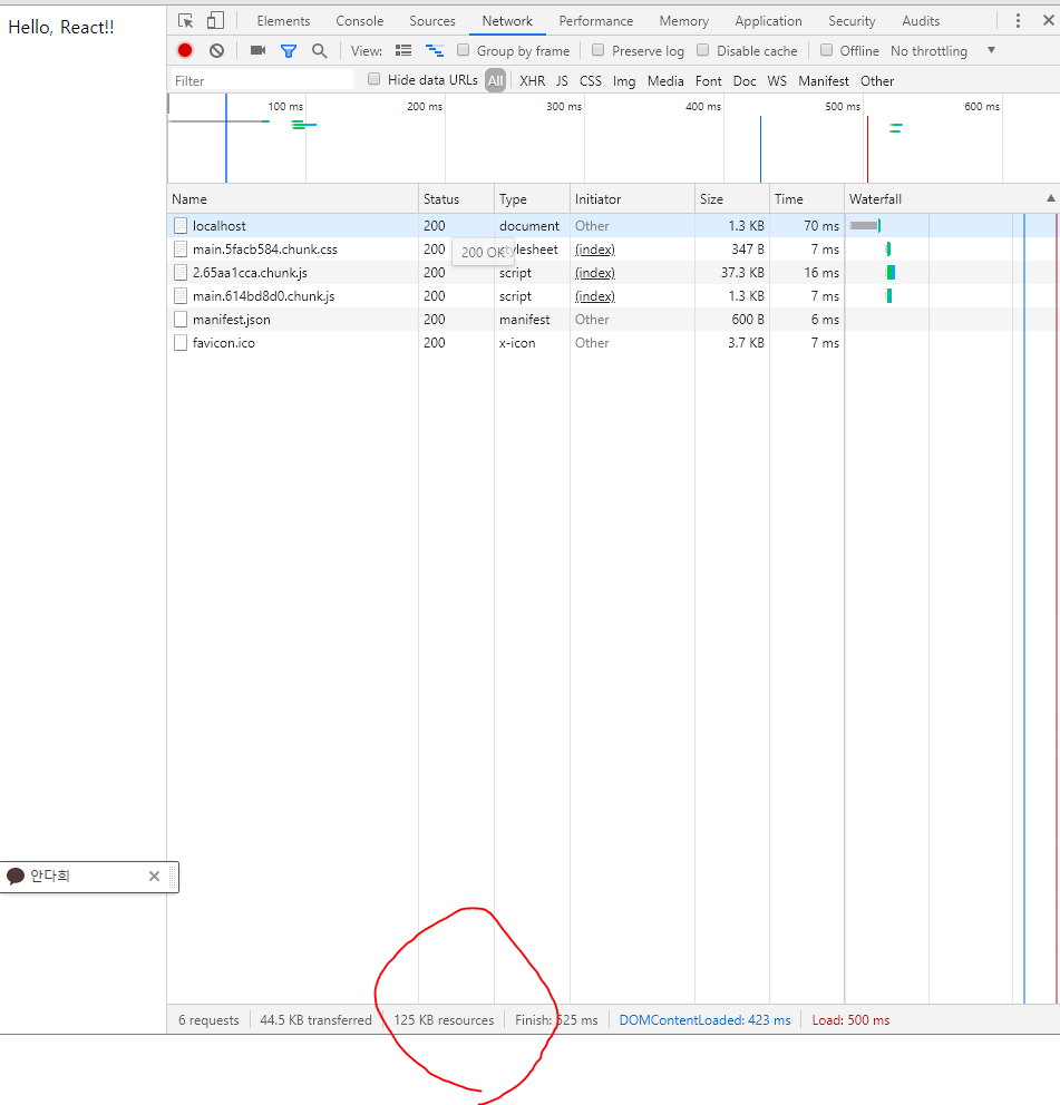 npx serve -s build하고 다시 개발자도구 켜서 로컬 웹페이지에서 용량 확인해보면