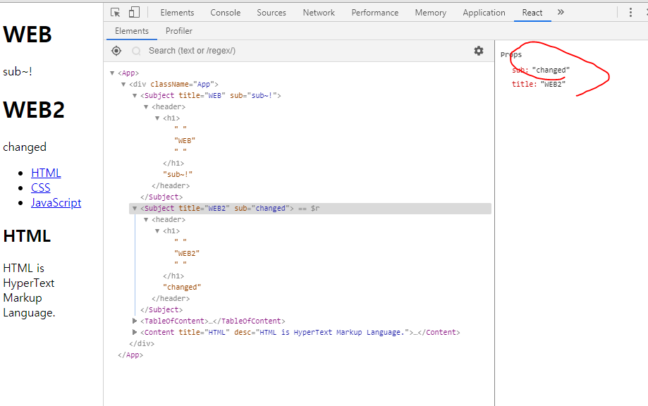 <Subject title="WEB2" sub="sub~!2"></Subject>